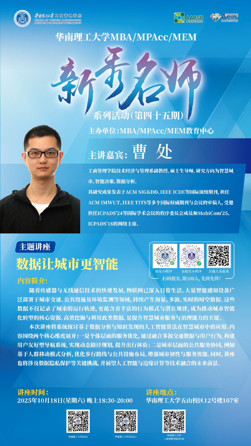 预告|新秀名师系列(第45期)@曹处:数据让城市更智能