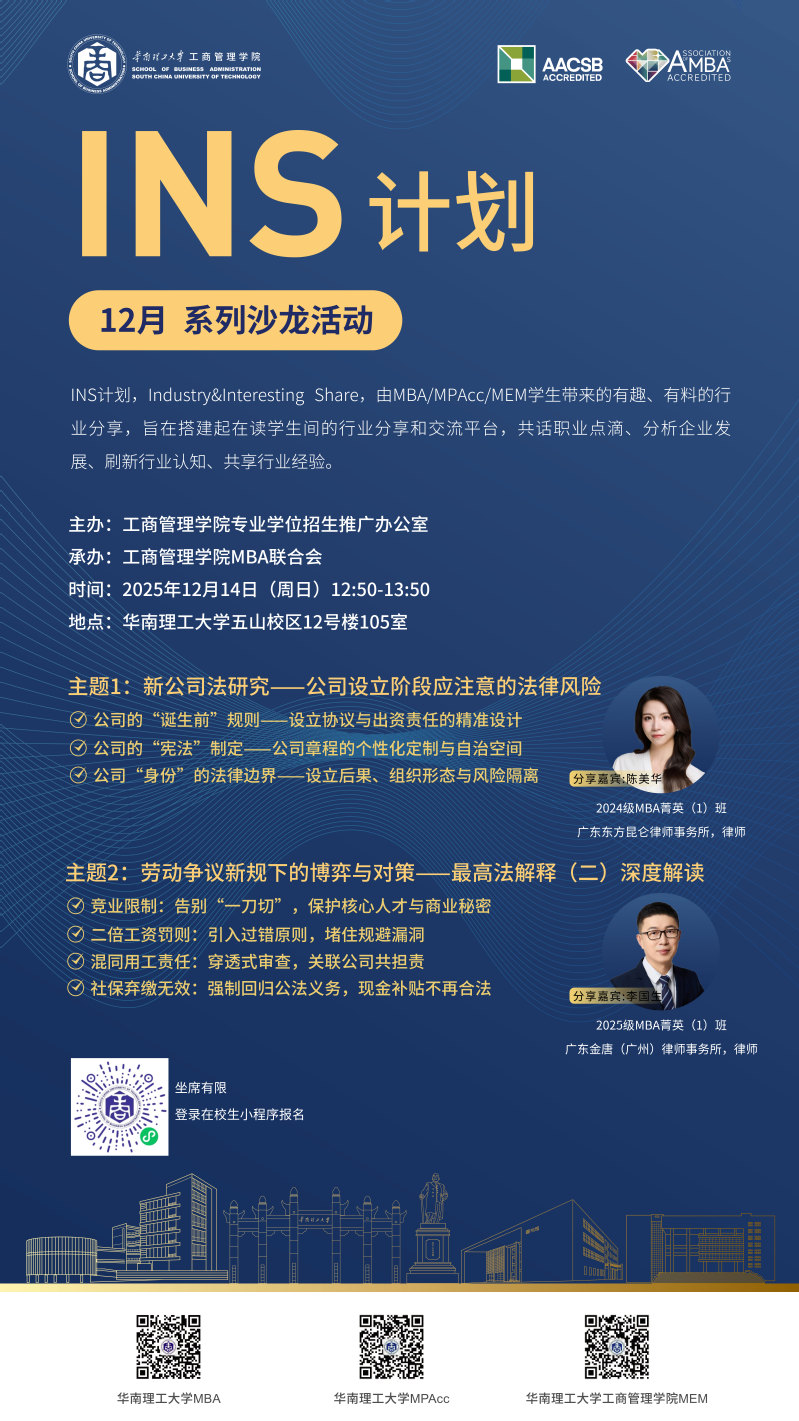 预告 | INS计划(2025.12)法商洞见:新公司法与劳资新规的双重审视